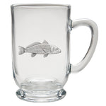 This coffee mug is decorated with a fine pewter casting. It is microwaveable and dishwasher safe with no heat cycle.. The glass coffee mug is 16 ounces, and the ceramic coffee mug is 15 ounces.