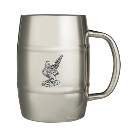 This 16 ounce stainless steel keg mug features a fine pewter casting. The details in this 3-d sculpted design are incredible! Made in USA.