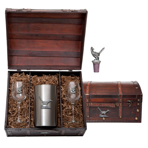 This is a wine chiller made of double-wall insulated stainless steel with a fine pewter logo medallion bonded to the front.