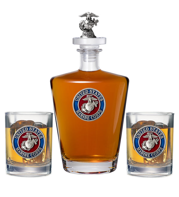 This 25 ounce glass decanter is embellished with a fine pewter casting and a 3-dimensional figure on top. Be sure to match it with some of our Double Old Fashioned glasses. A great addition to any home bar! Made in USA.