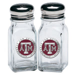 This is a set of salt & pepper shakers with a fine pewter logo medallion bonded to the side. Made in USA.