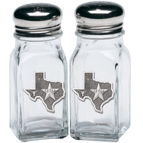 This is a set of salt & pepper shakers with a fine pewter logo medallion bonded to the side. Made in USA. Heritage Pewter has been hand-crafting fine pewter gifts...