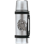 This 1 liter stainless steel thermos features a fine pewter casting. The details in this 3-d sculpted design are incredible! Made in USA.