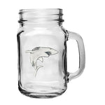 This 22 ounce glass mason jar mug features a fine pewter casting. The details in this 3-d sculpted design are incredible! Made in USA.
