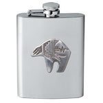 This 8 ounce stainless steel flask is embellished with a fine pewter casting. Assembled in USA.