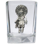 This 1.5 ounce square shot glass is highlighted with a fine pewter casting. Made in USA.