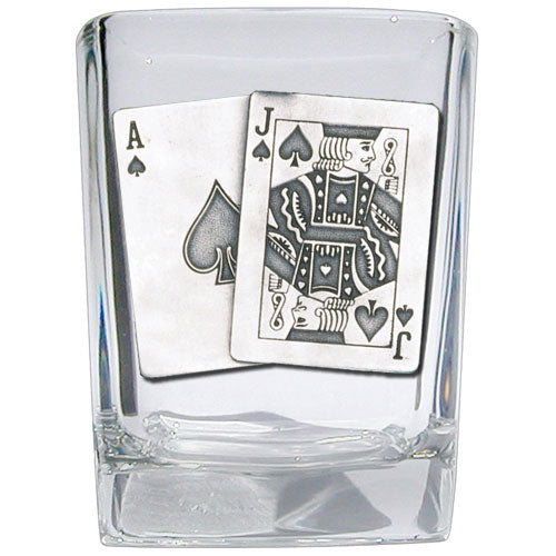 This 1.5 ounce square shot glass is highlighted with a fine pewter casting. Made in USA.