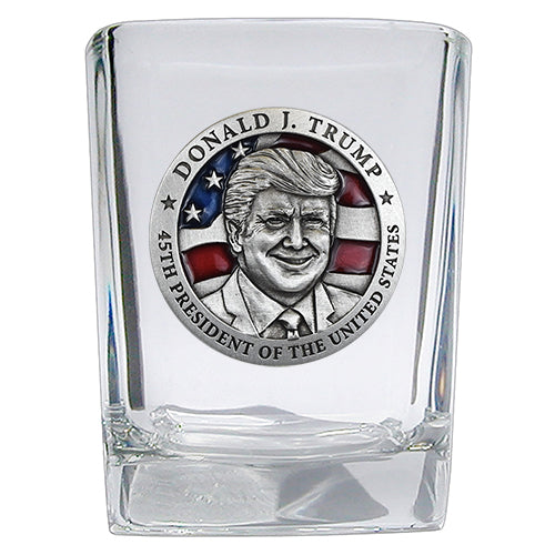 This 1.5 ounce square shot glass is highlighted with a fine pewter casting. Made in USA.