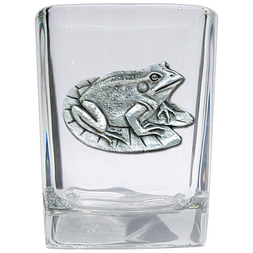 This 1.5 ounce square shot glass is highlighted with a fine pewter casting. Made in USA.