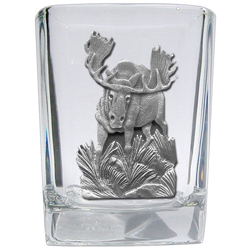 This 1.5 ounce square shot glass is highlighted with a fine pewter casting. Made in USA.