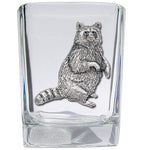 This 1.5 ounce square shot glass is highlighted with a fine pewter casting. Made in USA.