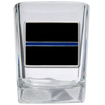 This 1.5 ounce square shot glass is highlighted with a fine pewter casting. Made in USA.