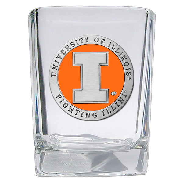 This 1.5 ounce square shot glass is highlighted with a fine pewter casting. Made in USA.