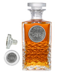 This 25 ounce glass decanter is embellished with a fine pewter casting. Be sure to match it with some of our Double Old Fashioned glasses. A great addition to any home bar!