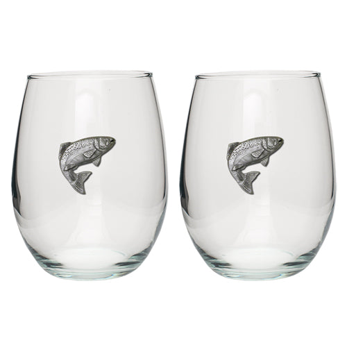 This is a set of two 12 ounce glass goblets with a fine pewter logo medallion bonded to the side. It could be used to serve water, wine or other beverages. Made in USA.