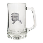 This 25 ounce glass stein features a fine pewter casting. The details in this 3-d sculpted design are incredible! Made in USA.
