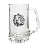 This 15 ounce glass stein features a fine pewter casting. The details in this 3-d sculpted design are incredible! Made in USA.