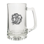 This 15 ounce glass stein features a fine pewter casting. The details in this 3-d sculpted design are incredible! Made in USA.