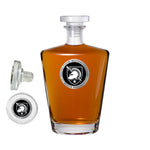 This 25 ounce glass decanter is embellished with a fine pewter casting. Be sure to match it with some of our Double Old Fashioned glasses. A great addition to any home bar!