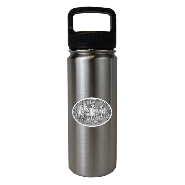 This 27 oz (800 mil) double wall stainless steel thermos is insulated and it is stainless inside and out. It is embellished with a fine pewter decorative casting. The lid has a screw on lid with a handle for easy transport.Heritage Pewter has been hand-crafting fine pewter gifts since 1988. We offer an array of pewter products, ranging from barware to wind chimes, golf clubs to coffee mugs.