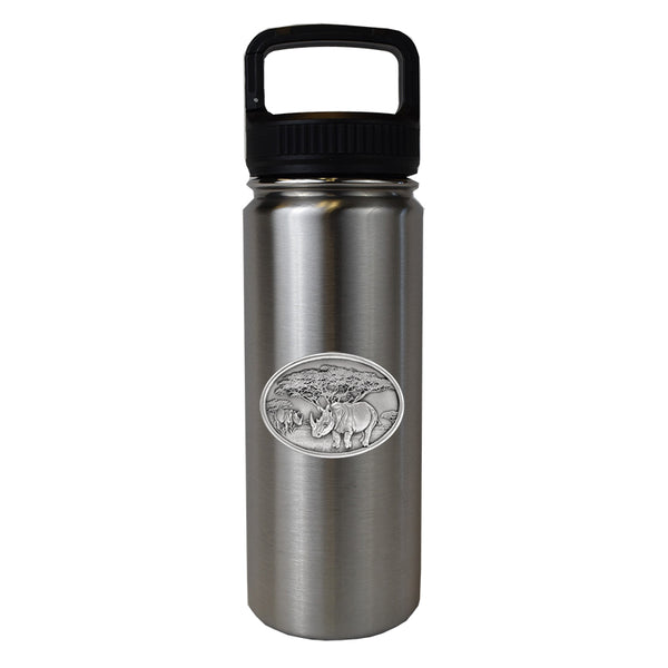 This 27 oz (800 mil) double wall stainless steel thermos is insulated and it is stainless inside and out. It is embellished with a fine pewter decorative casting. The lid has a screw on lid with a handle for easy transport.Heritage Pewter has been hand-crafting fine pewter gifts since 1988. We offer an array of pewter products, ranging from barware to wind chimes, golf clubs to coffee mugs.