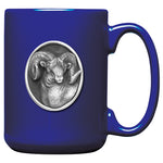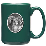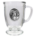 This coffee mug is decorated with a fine pewter casting. It is microwaveable and dishwasher safe with no heat cycle.. The glass coffee mug is 16 ounces, and the ceramic coffee mug is 15 ounces.