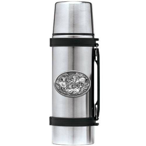 This 1 liter stainless steel thermos features a fine pewter casting. The details in this 3-d sculpted design are incredible! Made in USA.