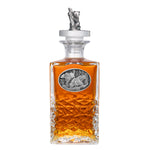 This 25 ounce glass decanter is embellished with a fine pewter casting and a 3-dimensional figure on top. Be sure to match it with some of our Double Old Fashioned glasses. A great addition to any home bar! Made in USA.