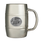 This 16 ounce stainless steel keg mug features a fine pewter casting. The details in this 3-d sculpted design are incredible! Made in USA.
