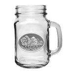 This 22 ounce glass mason jar mug features a fine pewter casting. The details in this 3-d sculpted design are incredible! Made in USA.