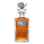 This 25 ounce glass decanter is embellished with a fine pewter casting. Be sure to match it with some of our Double Old Fashioned glasses. A great addition to any home bar!