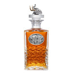 This 25 ounce glass decanter is embellished with a fine pewter casting and a 3-dimensional figure on top. Be sure to match it with some of our Double Old Fashioned glasses. A great addition to any home bar! Made in USA.