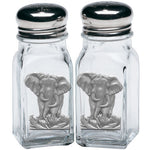 This is a set of salt & pepper shakers with a fine pewter logo medallion bonded to the side. Made in USA.