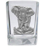 This 1.5 ounce square shot glass is highlighted with a fine pewter casting. Made in USA.