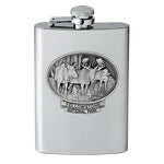 This 8 ounce stainless steel flask is embellished with a fine pewter casting. Assembled in USA. Yellowstone National Park banner prominently displayed.