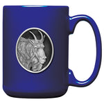This coffee mug is decorated with a fine pewter casting. It is microwaveable and dishwasher safe with no heat cycle.. The glass coffee mug is 16 ounces, and the ceramic coffee mug is 15 ounces.