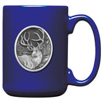 This coffee mug is decorated with a fine pewter casting. It is microwaveable and dishwasher safe with no heat cycle.. The glass coffee mug is 16 ounces, and the ceramic coffee mug is 15 ounces.