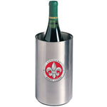 This is a wine chiller made of double-wall insulated stainless steel with a fine pewter logo medallion bonded to the front.