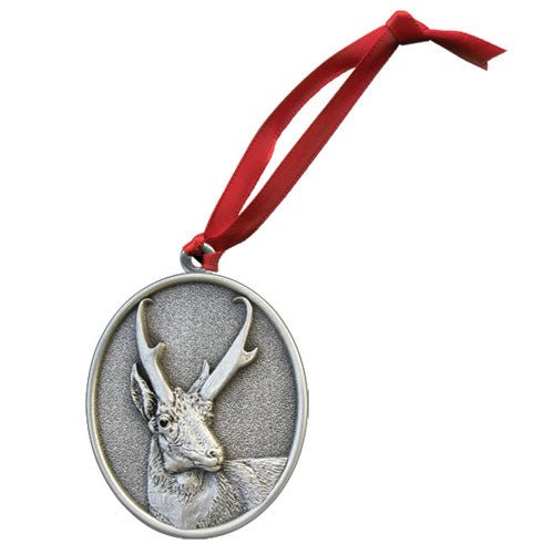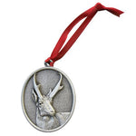 This fine pewter ornament is detailed on both sides. It comes with satin ribbon and in a window package. Use it on your tree, car mirror, or other applications! Made in USA.