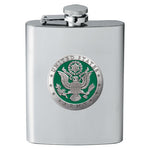 This 8 ounce stainless steel flask is embellished with a fine pewter casting. Assembled in USA.