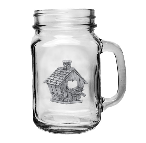 This 22 ounce glass mason jar mug features a fine pewter casting. The details in this 3-d sculpted design are incredible! Made in USA.