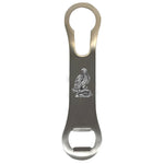 This bottle opener is solid stainless steel with a decorative fine pewter accent casting. The hole opposite the opener is for hanging on a peg. Heritage Pewter has been hand-crafting fine pewter gifts since 1988. We offer an array of pewter products, ranging from barware to wind chimes, golf clubs to coffee mugs. We can customize any of these products with our beautiful pewter designs like a college logo, a wildlife scene, a military motif, or your favorite sport. Please be sure to add this pewter product to your cart and then continue browsing our website - find a pewter gift for everyone on your list!