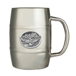 This 16 ounce stainless steel keg mug features a fine pewter casting. The details in this 3-d sculpted design are incredible! Made in USA.