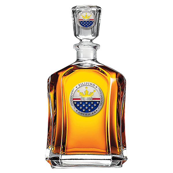 This 24 ounce glass decanter is embellished with a fine pewter casting. It is a great match with two Double Old Fashioned glasses. A great addition to any home bar! Made in USA.