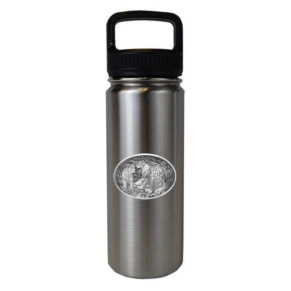 This 27 oz (800 mil) double wall stainless steel thermos is insulated and it is stainless inside and out. It is embellished with a fine pewter decorative casting. The lid has a screw on lid with a handle for easy transport.Heritage Pewter has been hand-crafting fine pewter gifts since 1988. We offer an array of pewter products, ranging from barware to wind chimes, golf clubs to coffee mugs.