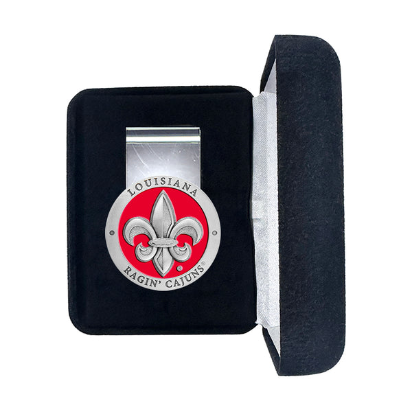 This money clip is made with super spring steel. It will hold one bill or a giant stack! The best looking and functioning clip you will ever own! The fine pewter detail is intricate. Comes with a velour hinged gift box. Made in USA.