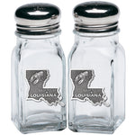 This is a set of salt & pepper shakers with a fine pewter logo medallion bonded to the side. Made in USA.