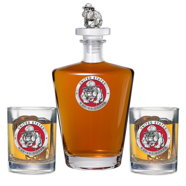 This 25 ounce glass decanter is embellished with a fine pewter casting and a 3-dimensional figure on top. Be sure to match it with some of our Double Old Fashioned glasses. A great addition to any home bar! Made in USA.
