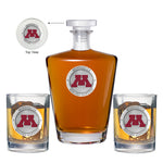 This 25 ounce glass decanter is embellished with a fine pewter casting. Added 14 ounce two double old fashioned glass is the ultimate vessel for your favorite beverage. It is exquisitely detailed with a fine pewter casting. Made in USA.