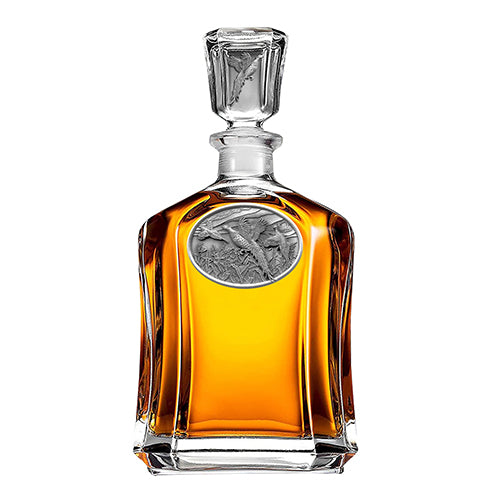 This 24 ounce glass decanter is embellished with a fine pewter casting. It is a great match with two Double Old Fashioned glasses. A great addition to any home bar! Made in USA.